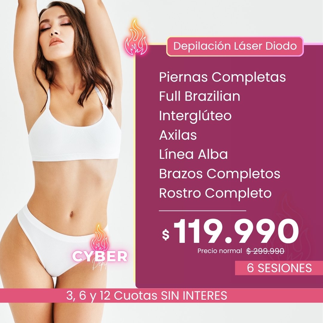 CYBER – Piernas Completas + Full Brazilian + Interglúteo + Axilas + Línea Alba + Brazos Completos + Rostro Completo