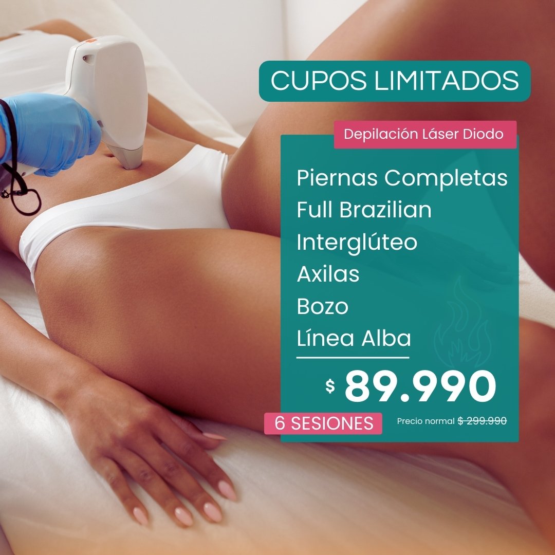 Consigue una piel suave y libre de vello con nuestro exclusivo paquete de depilación láser diodo. Esta oferta especial incluye 6 sesiones para las zonas más solicitadas:
